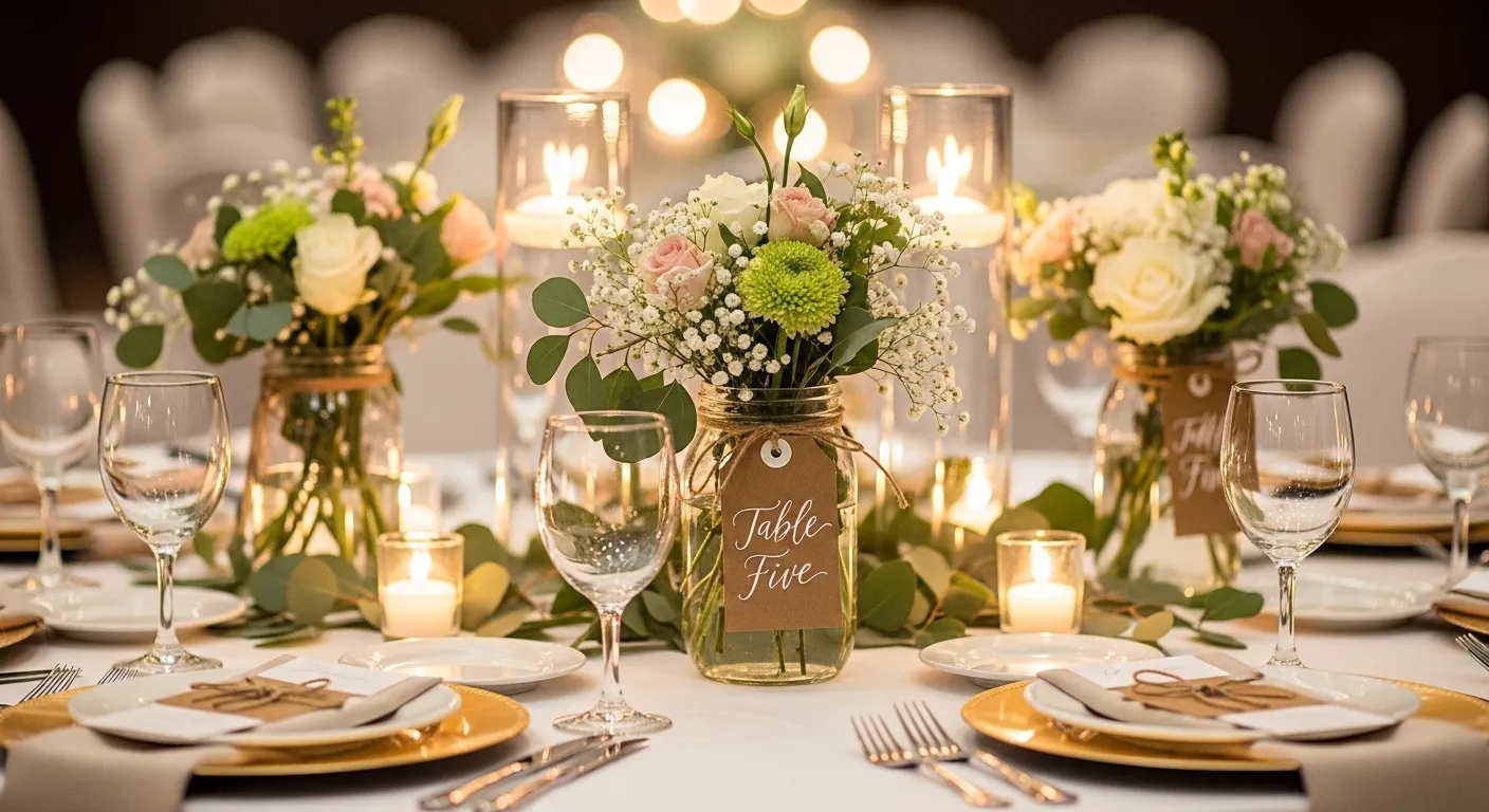 Tags double as decor and function. Write table numbers or sweet messages. It keeps the design cohesive.