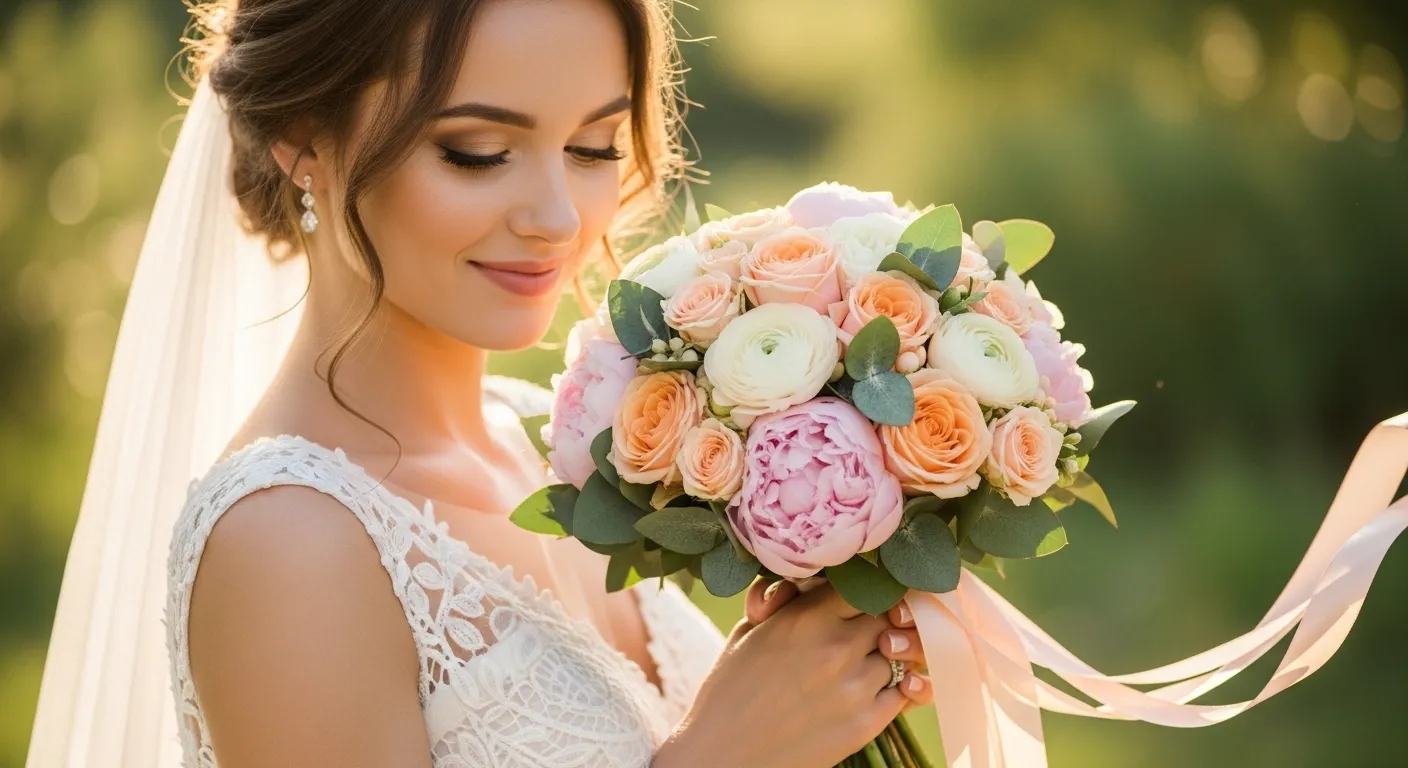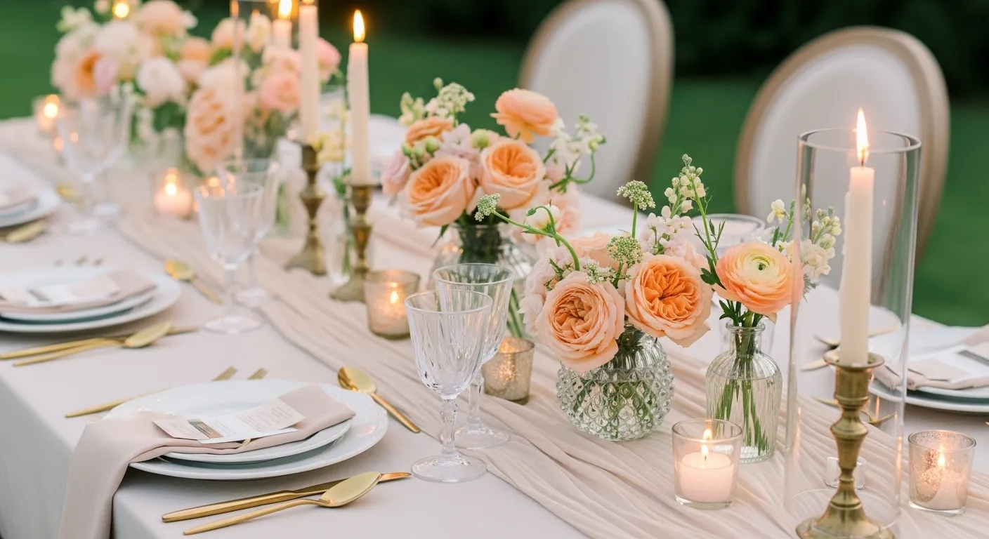 Cream softens peach and keeps the bouquets timeless. It feels romantic and photographs beautifully. Use different textures, not just colors.