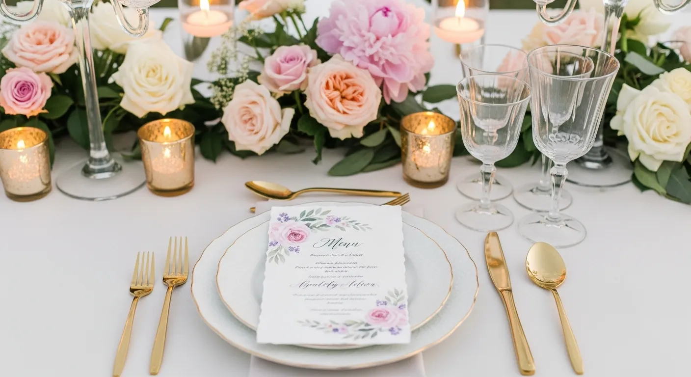 Paper goods tie everything together. Watercolor prints feel handmade and romantic. Keep fonts simple so colors shine.