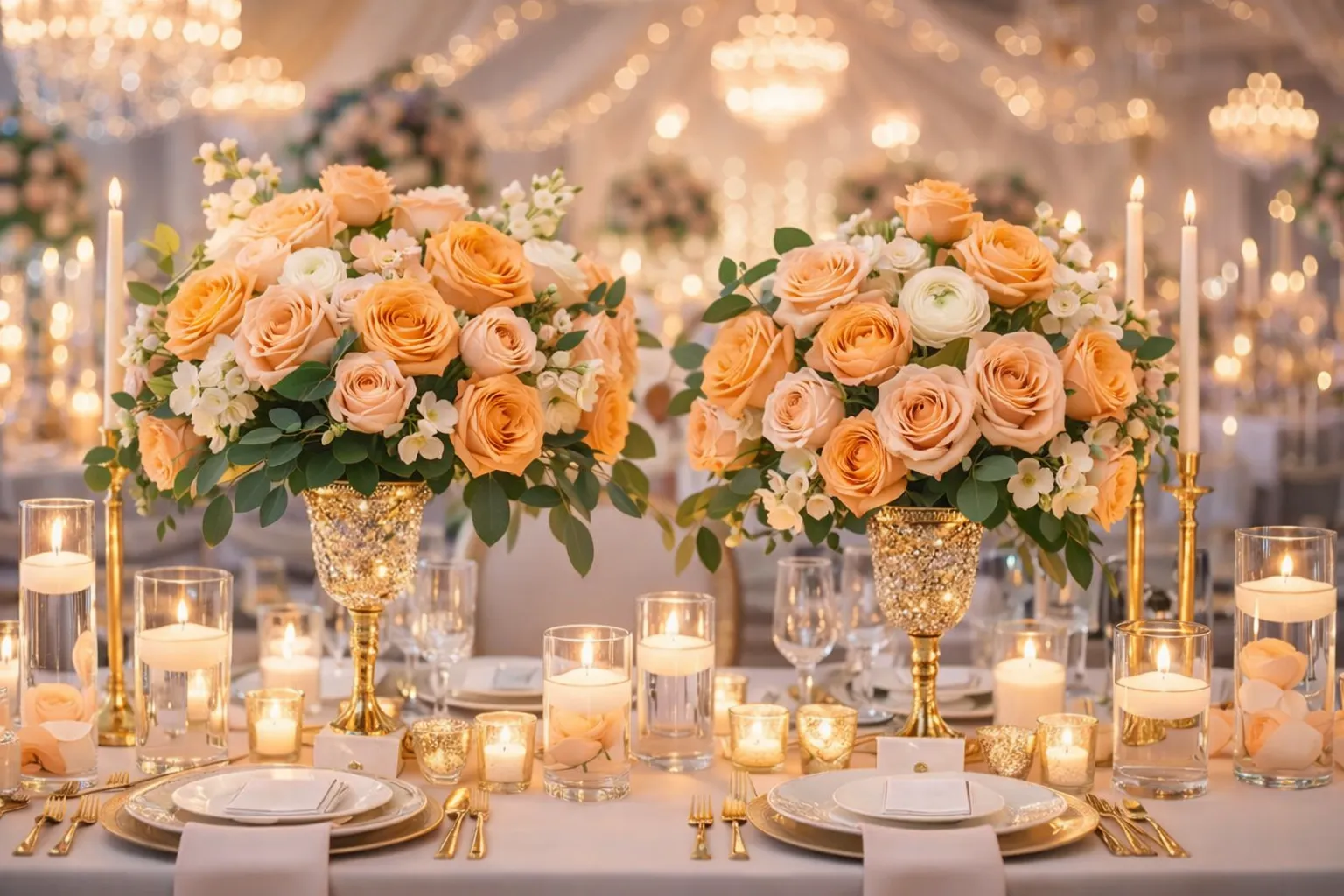 Arrange peach floral centerpieces
