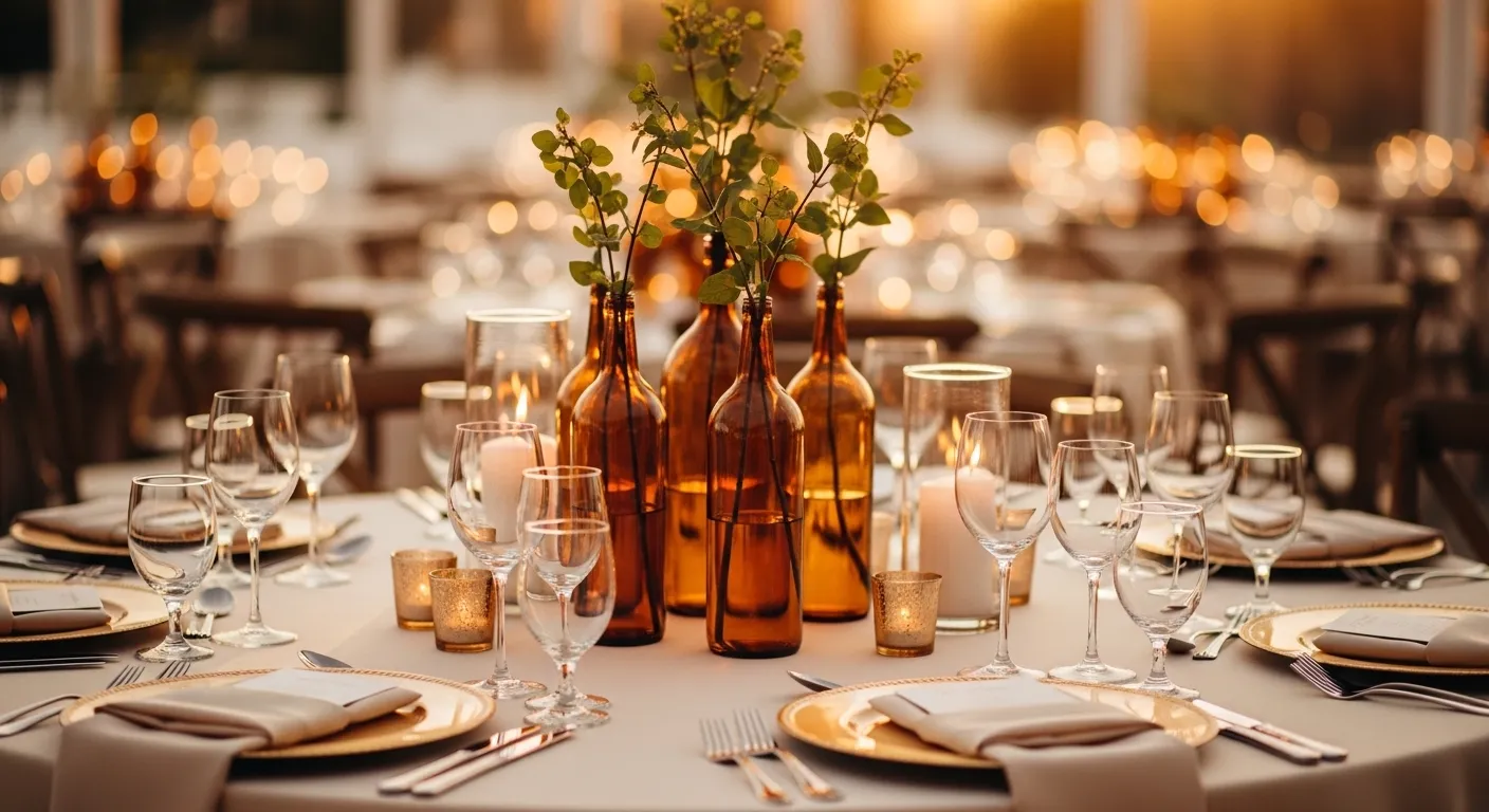 Use wood slices, jars, greenery, and candles. Texture matters more than price.