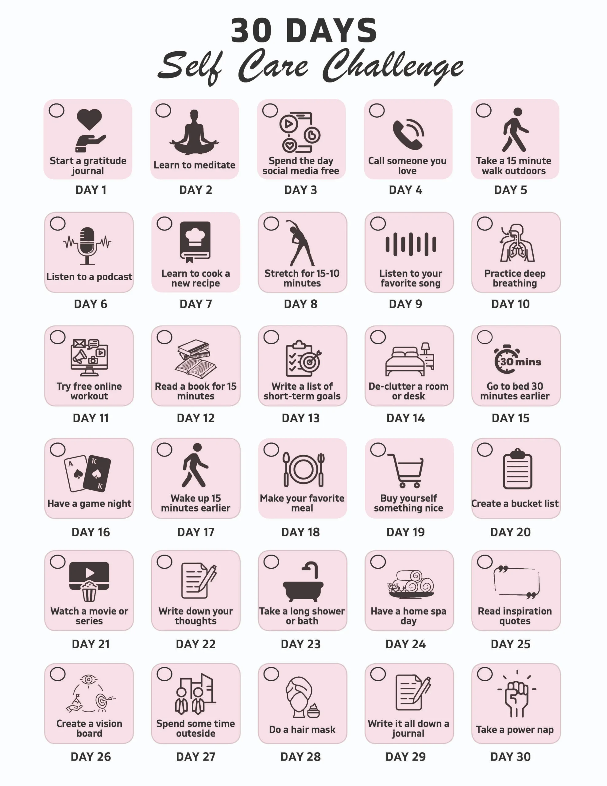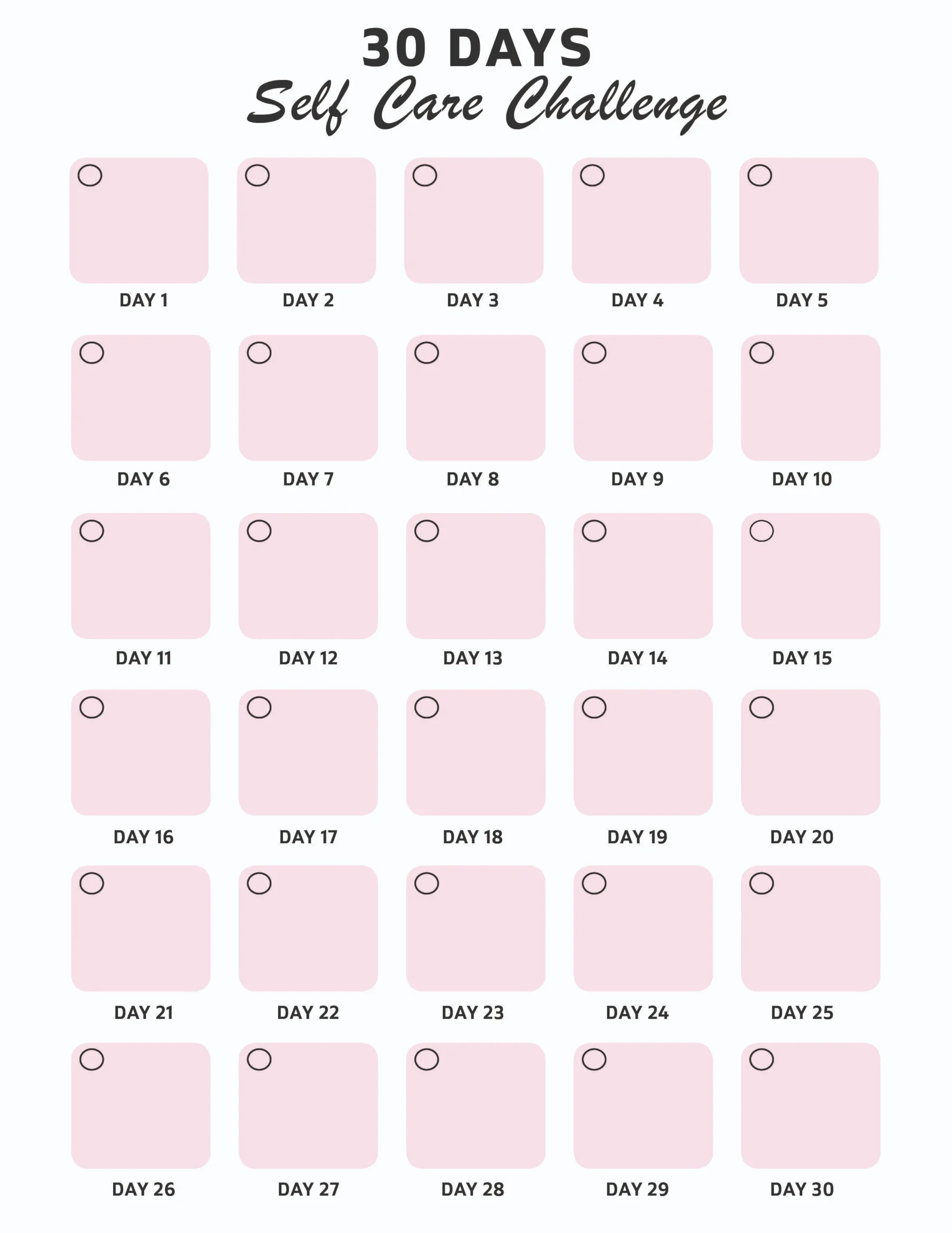 - 30-day self-care challenge sheet