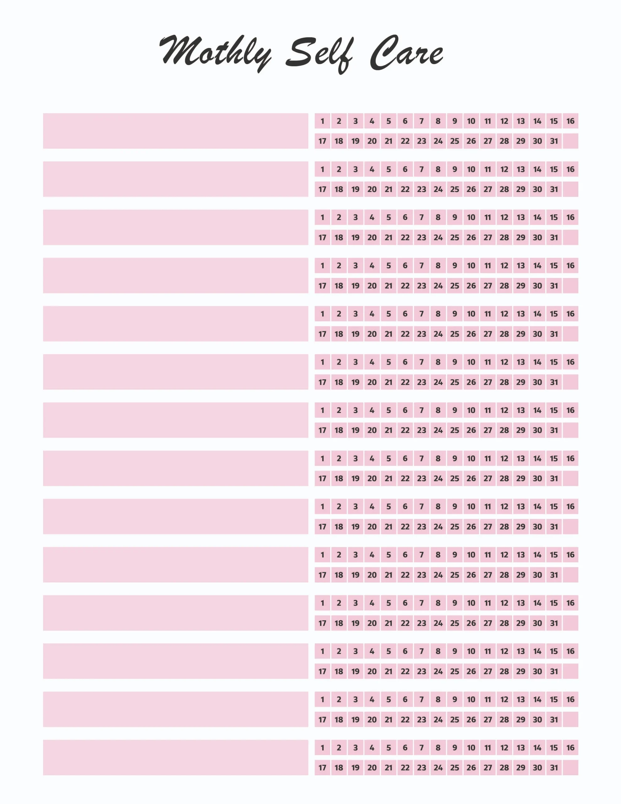 - monthly self-care habit tracker
