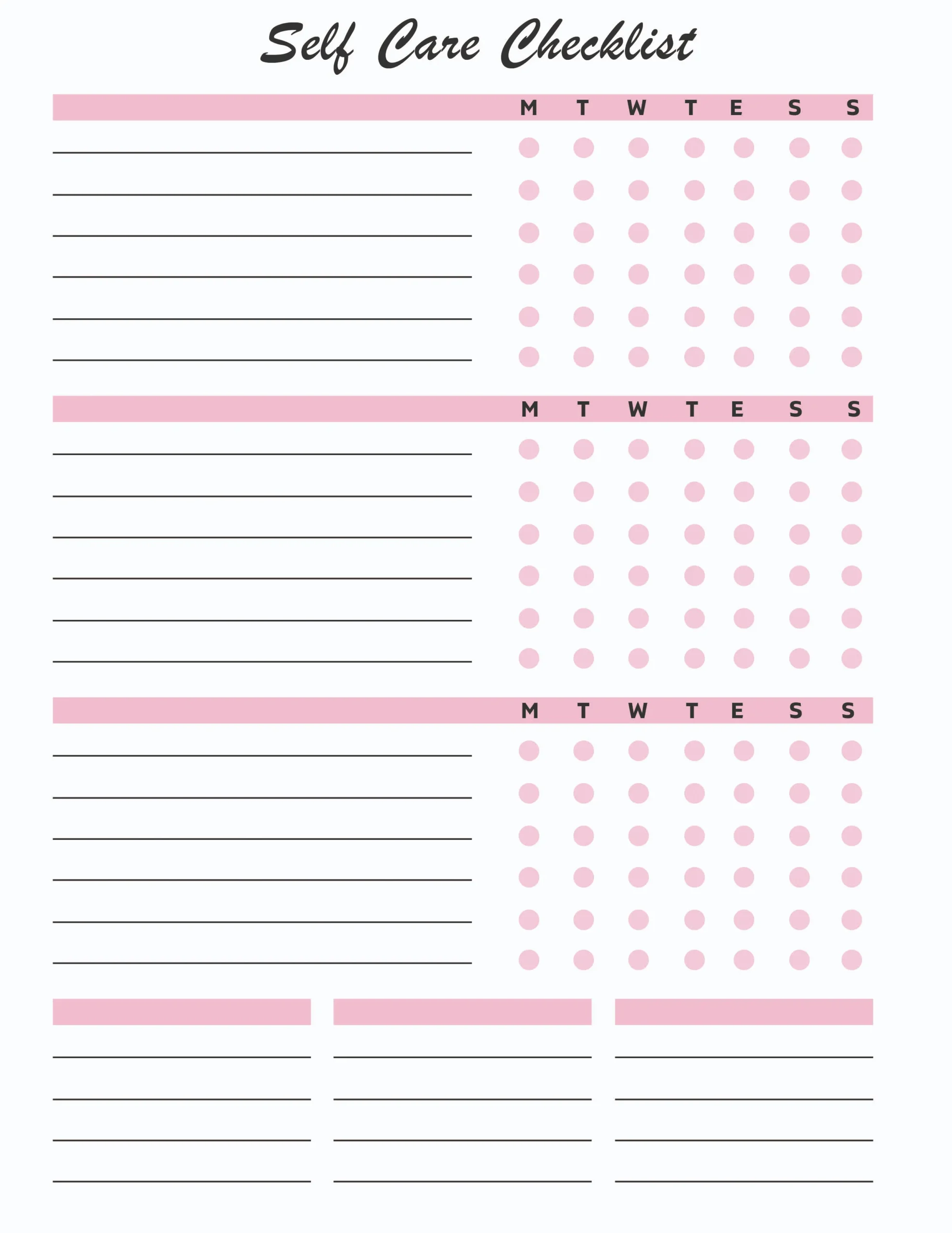 - weekly self-care habit checklist