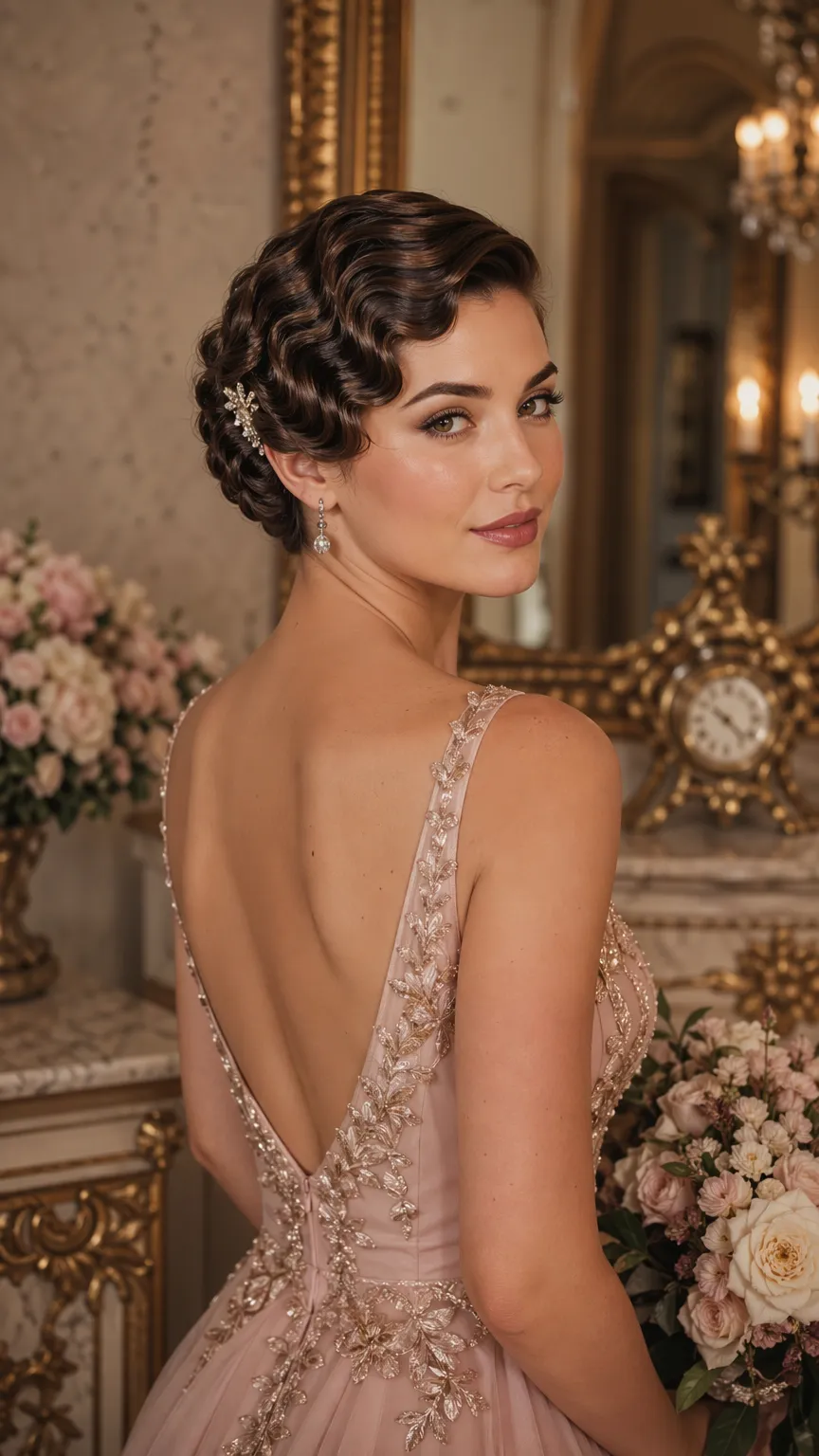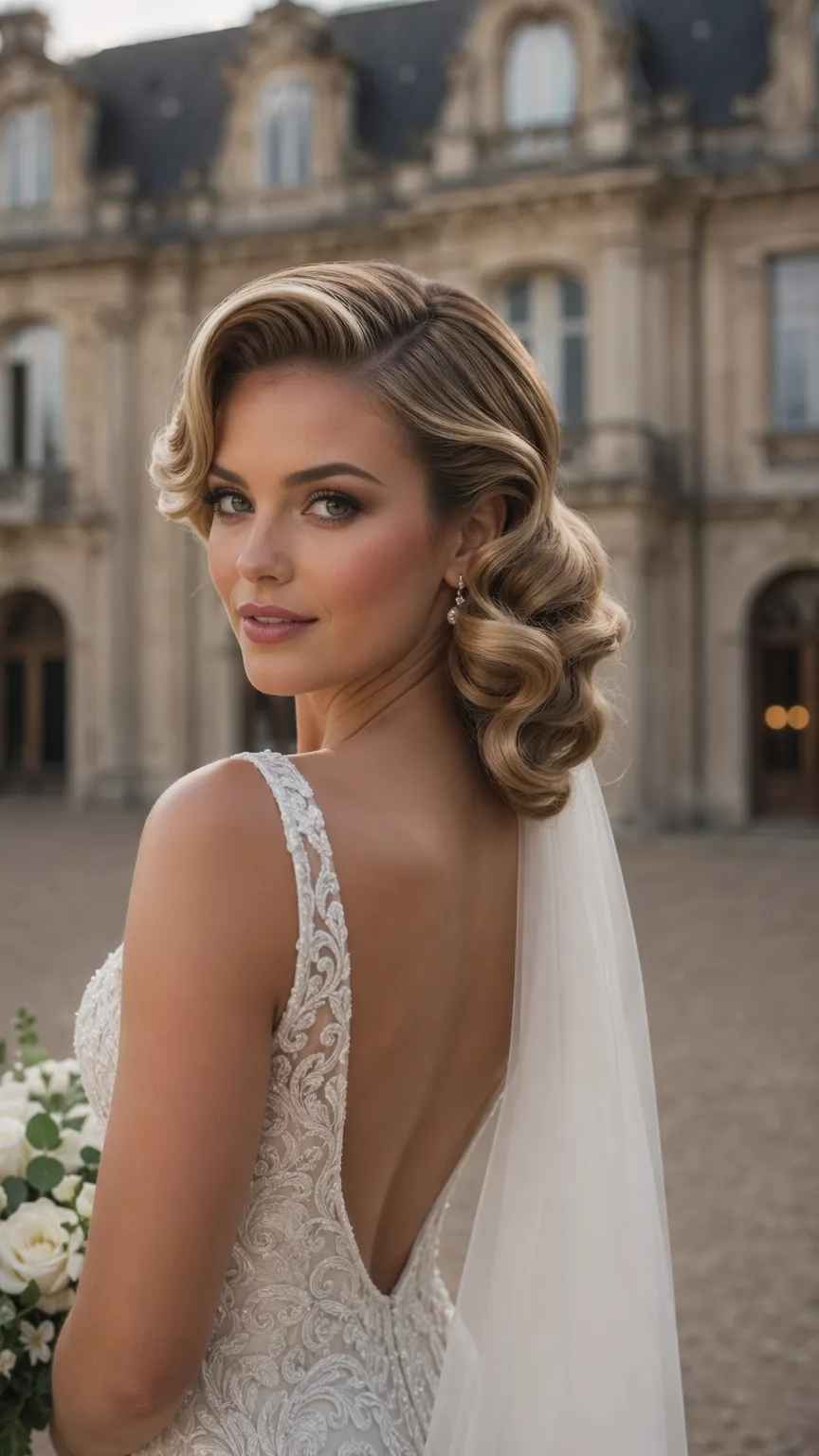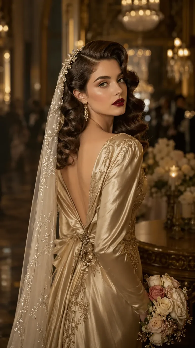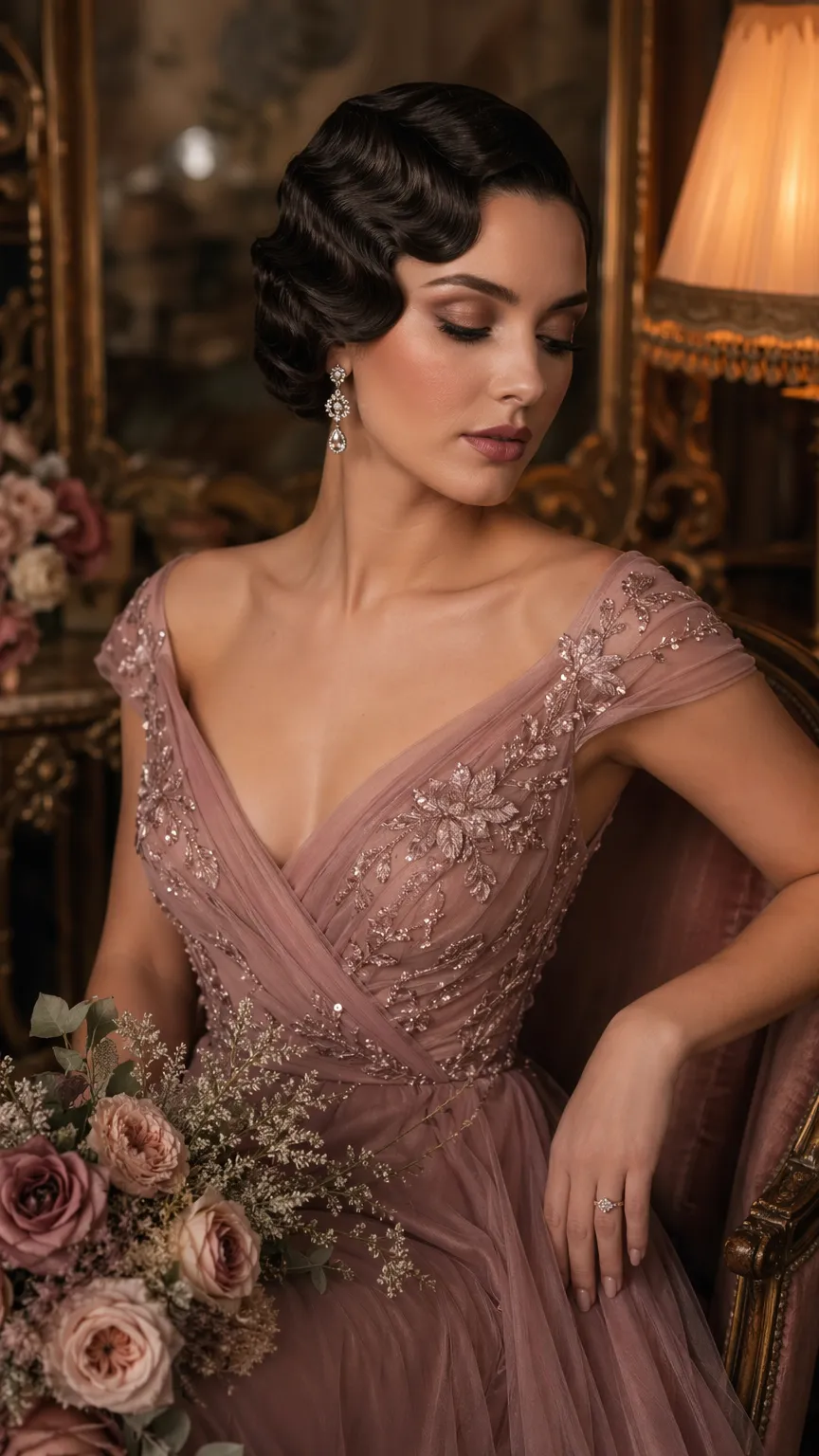 Hair length changes how vintage wedding hairstyles sit, but it does not limit the mood. Short hair can carry finger waves, tucked sides, or sleek curves beautifully. Medium hair works well for brushed-out waves, pinned volume, and softer rolls. Long hair gives more room for full updos, deep side-swept movement, and structured shapes that hold their line.