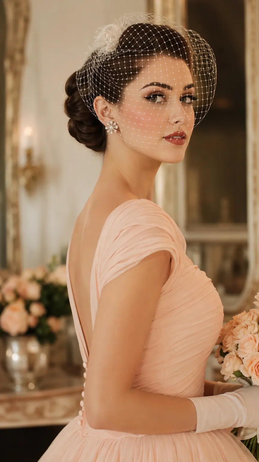 A vintage-inspired hairstyle looks best when it borrows from the past without copying every detail from one era. That usually means choosing one strong vintage cue and keeping the rest of the look soft and bridal. A sculpted wave, a birdcage veil, or a clean roll can say enough on its own.