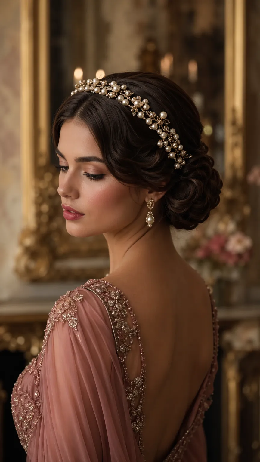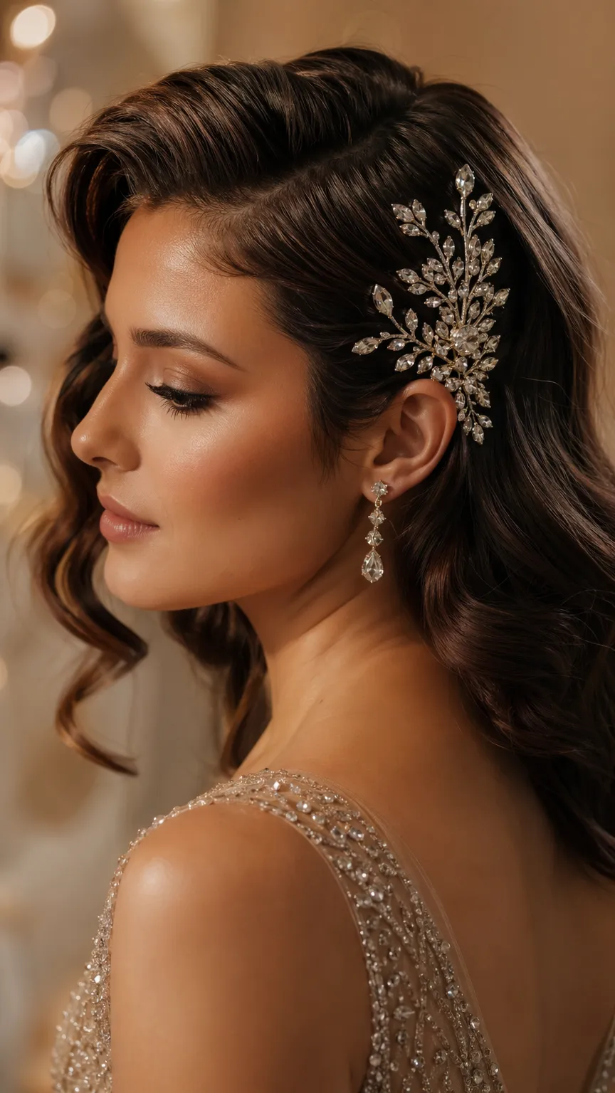 Headpieces with pearls, crystals, or a delicate antique feel can also work well when the hairstyle itself stays clean. The key is placement. One carefully chosen accessory near the temple, side part, or low bun usually says more than several details at once. When the hair already has strong shape, the accessory should support it, not compete with it.