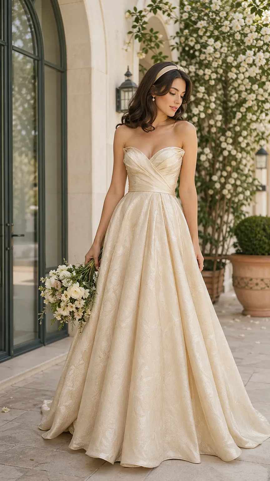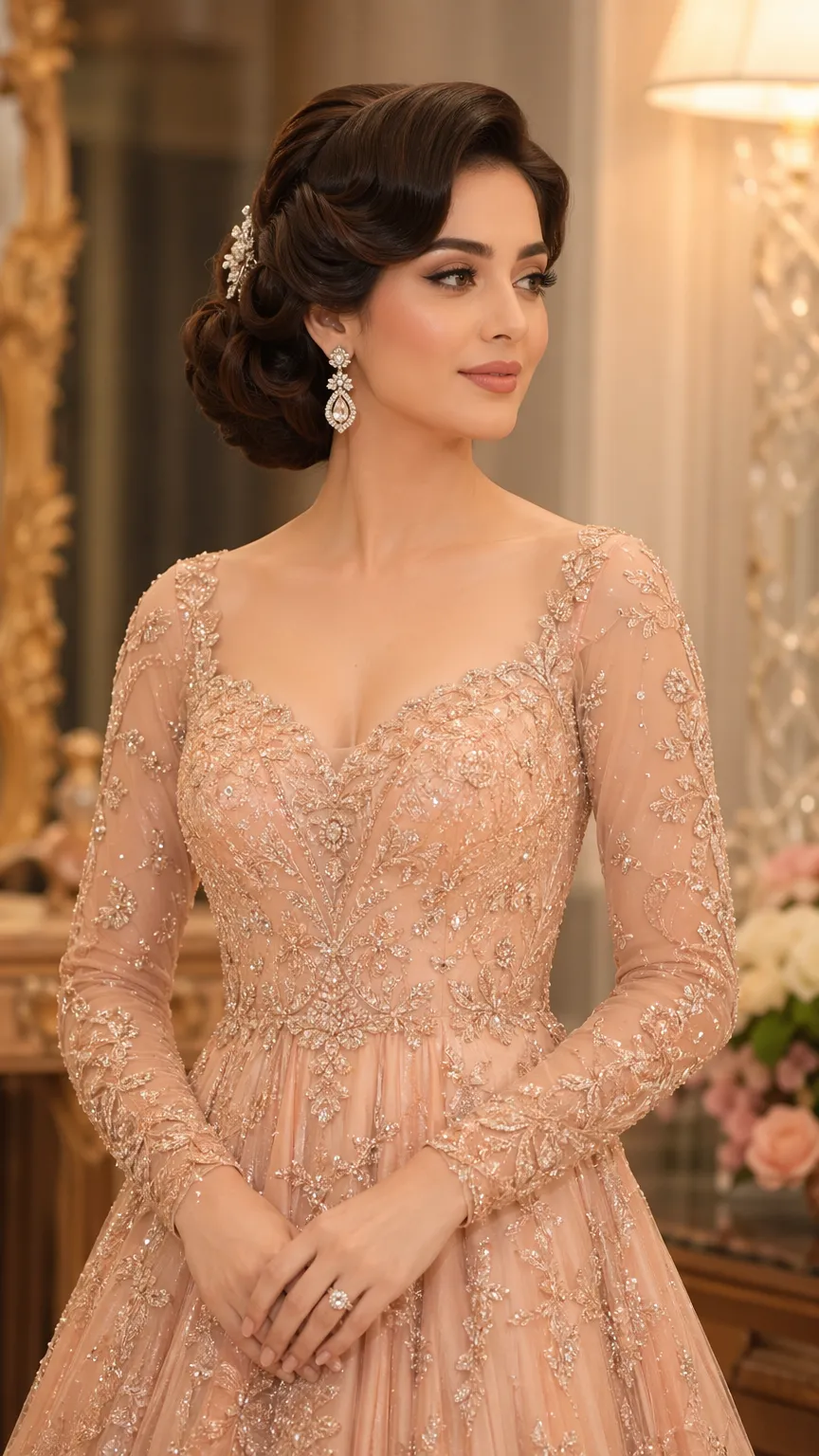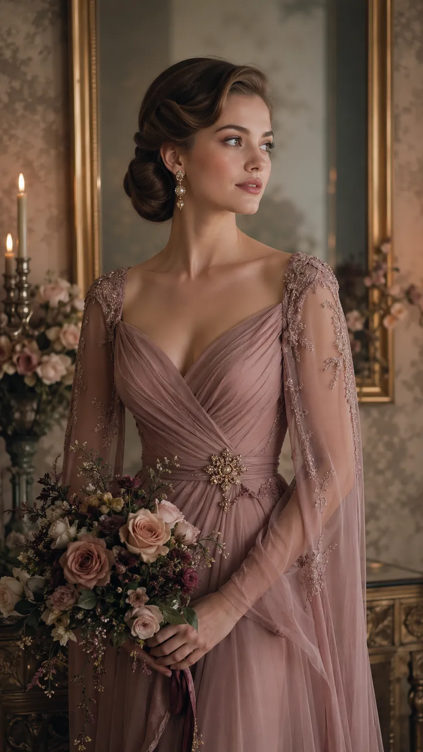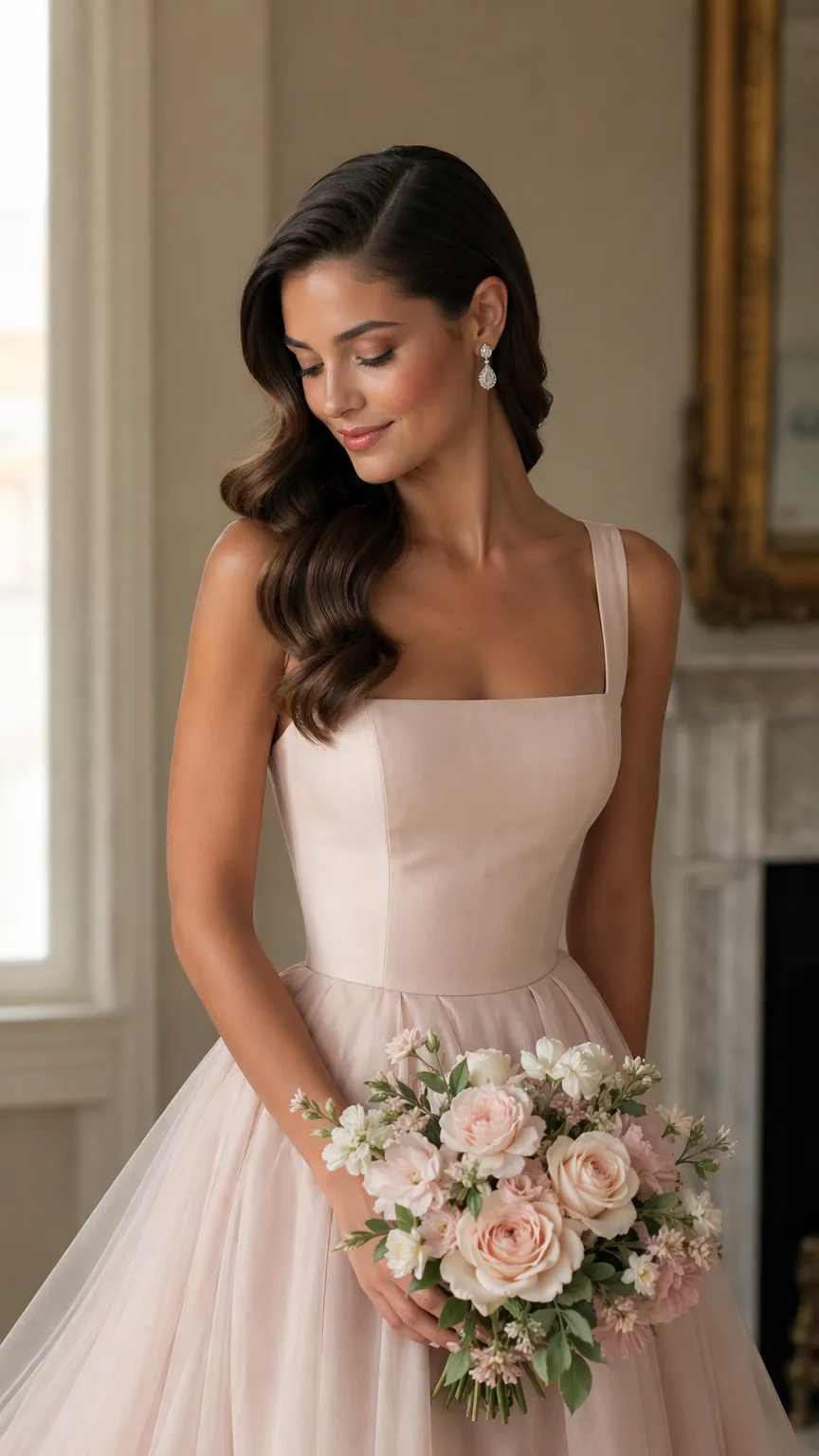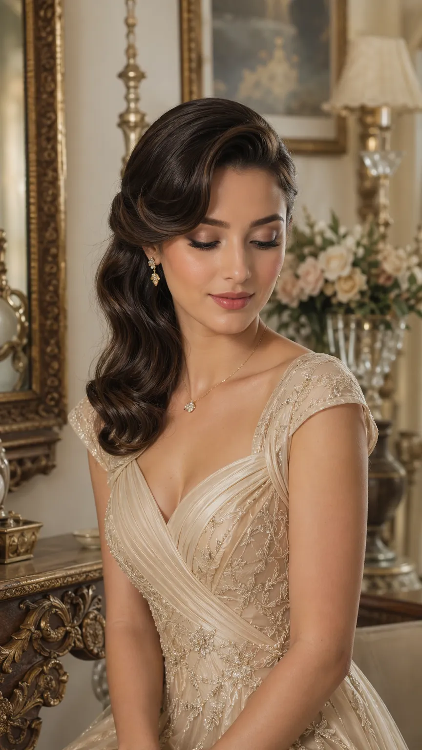 The trick is to match the level of structure. If the gown feels minimal, the hair can carry more detail. If the dress already has lace, beading, or strong texture, the hairstyle may look better with one vintage element instead of many. That balance keeps the whole look clear and elegant.