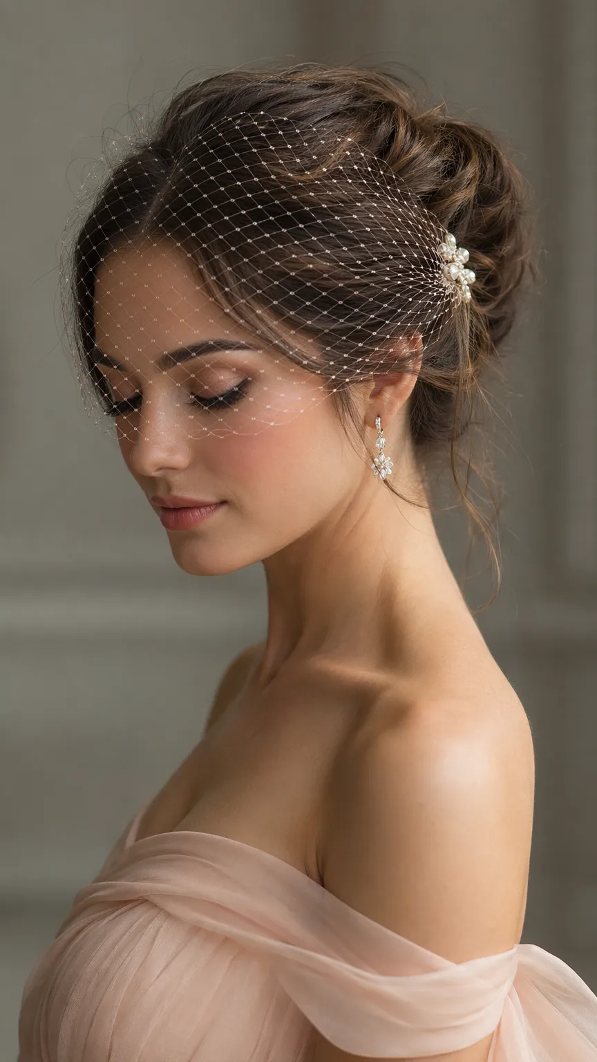 Vintage accessories work best when they look like part of the hairstyle instead of something added at the last second. Birdcage veils bring instant retro character and suit sleek bobs, polished updos, and side-parted styles beautifully. Side combs can highlight one sculpted section without taking over the whole look.