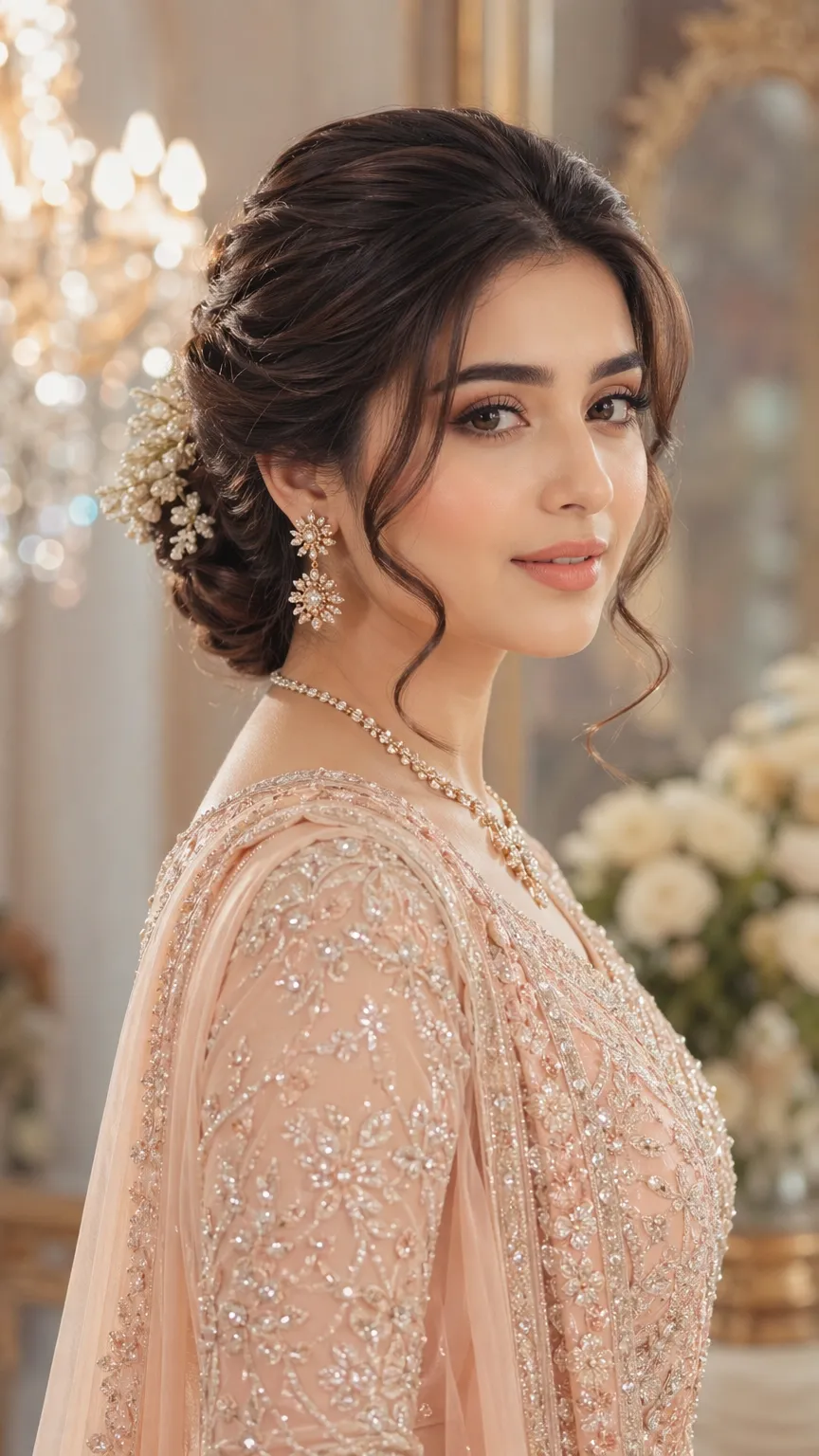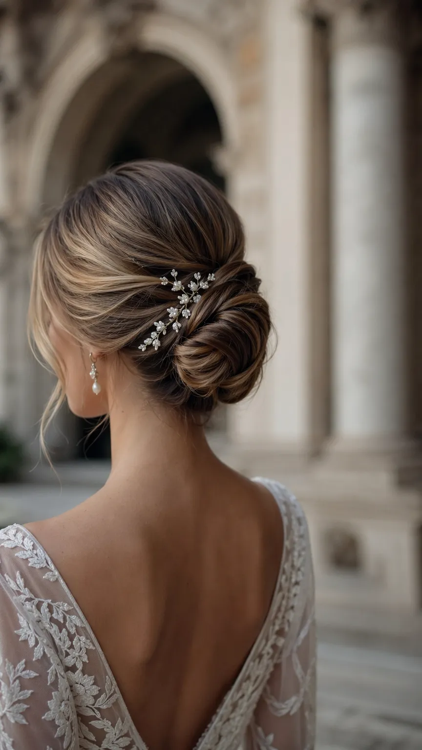 This works especially well for brides who want a lighter dress, a daytime setting, or a more relaxed kind of elegance. Think in terms of selective detail, not full saturation. The more edited the hairstyle feels, the easier it is for the face, dress, and natural softness of the look to stay in focus.
