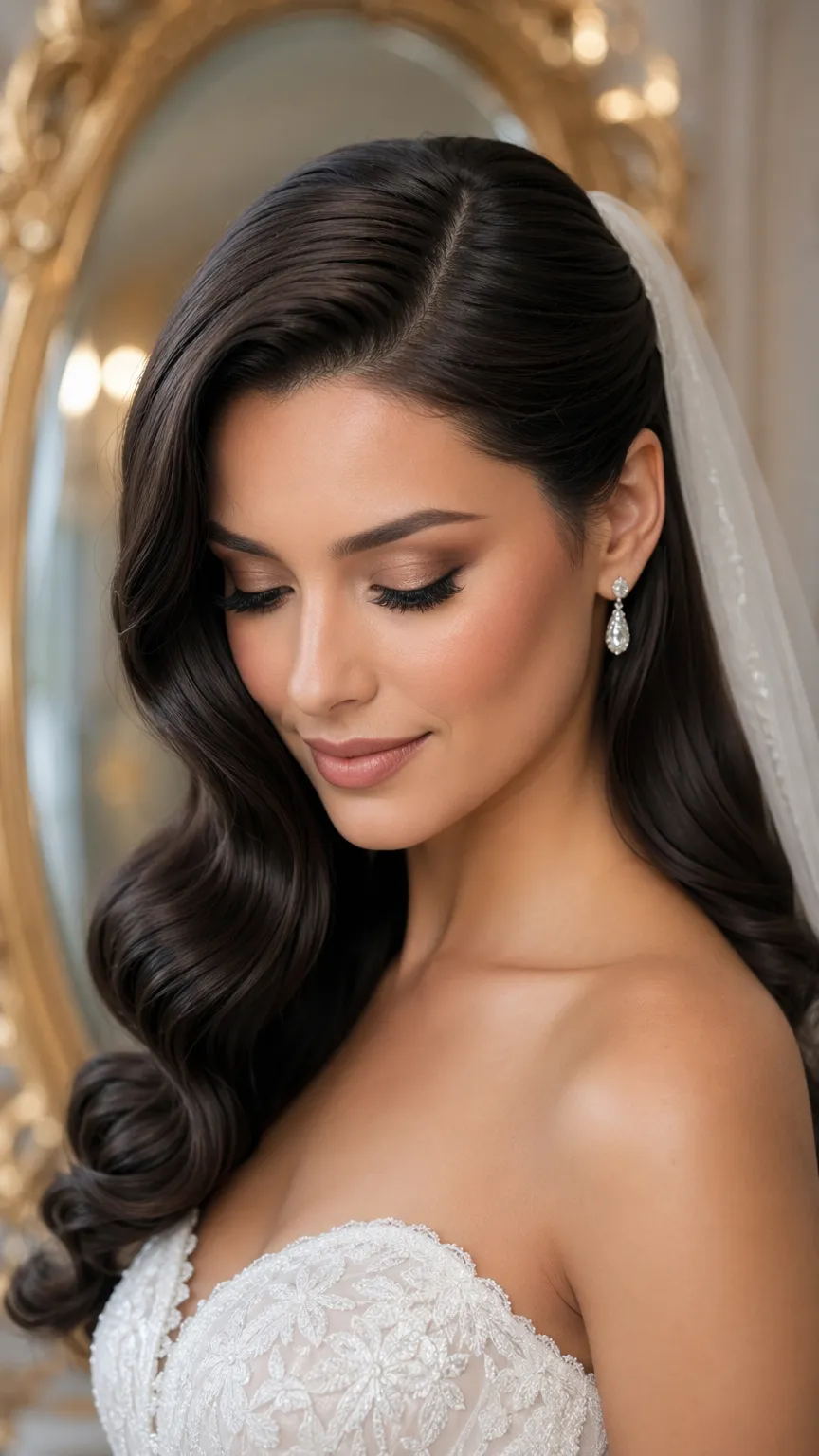 Both can be beautiful. The difference comes down to mood. Hollywood waves feel polished and cinematic, while softer retro hair feels romantic and relaxed. Brides who want a cleaner evening look often lean toward stronger wave definition. Those wanting gentleness usually prefer movement that looks brushed out, touchable, and light.