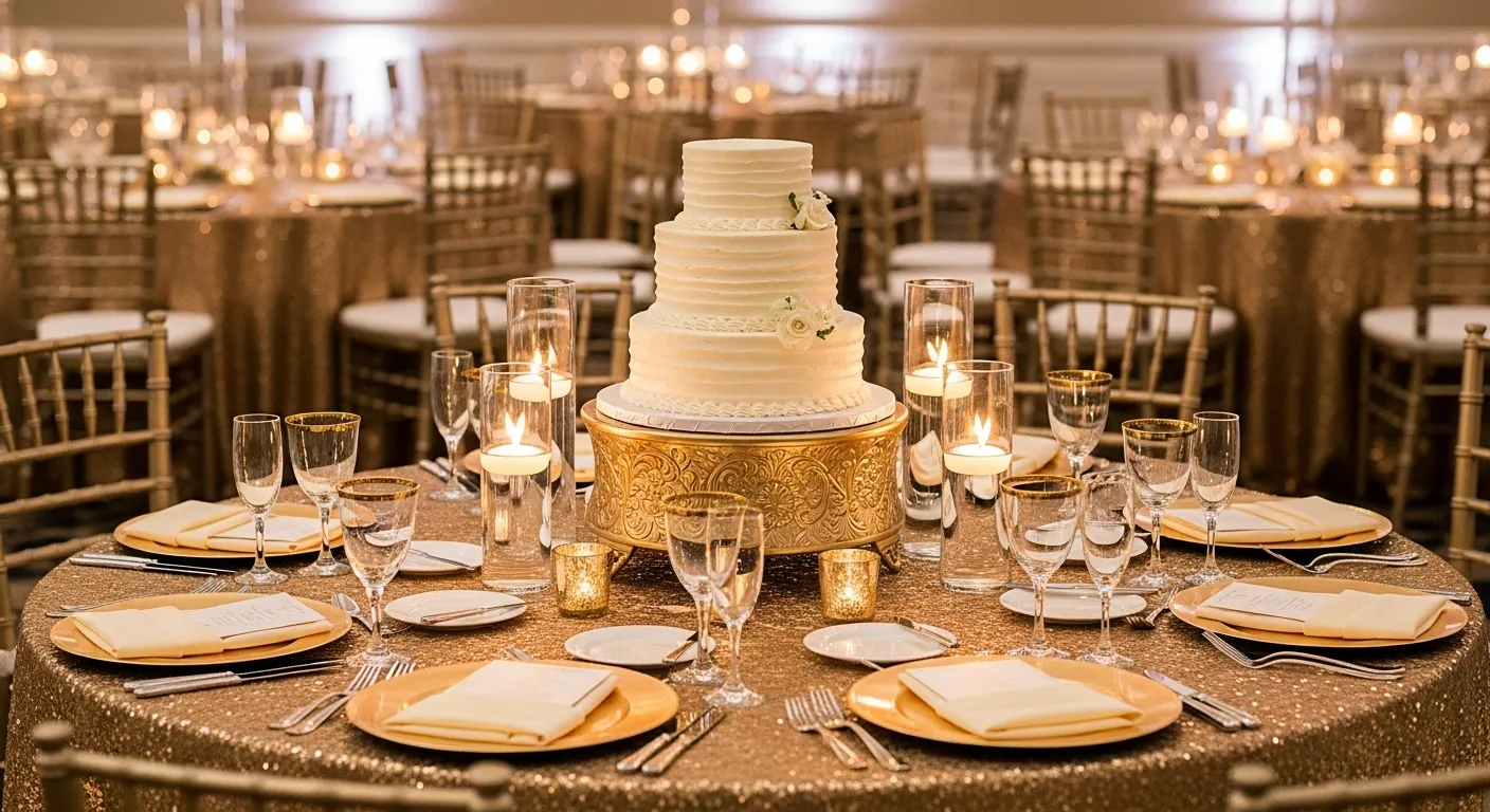 For black-tie vibes, add shine. Metallics, glass, and sparkle give a luxury hotel energy.