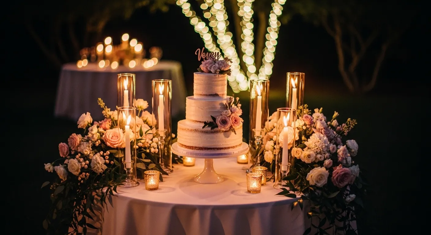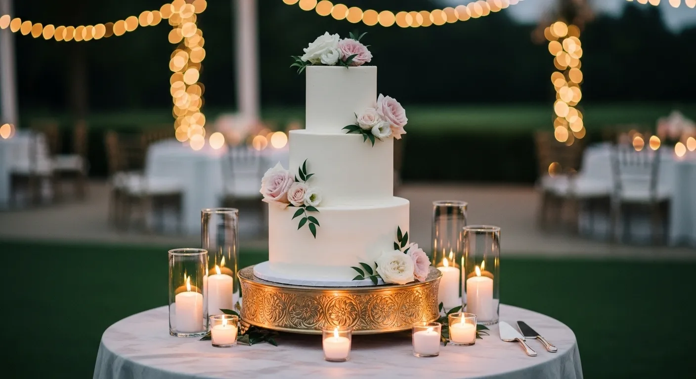 Dim the lights and let candles do the magic. The cake becomes the star. Guests feel calm and romantic, especially during evening receptions.