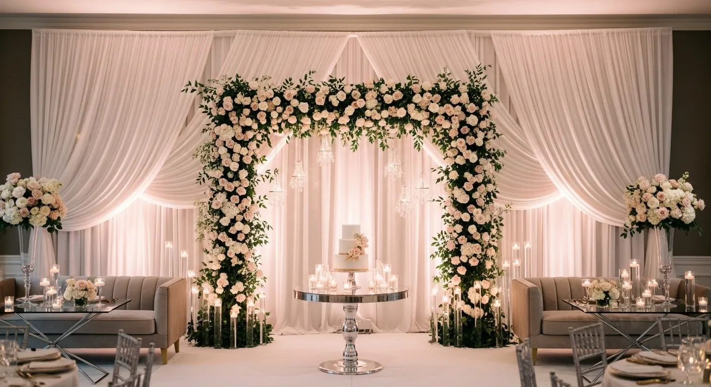 Most couples forget the background. The photos look flat. A backdrop fixes everything. Use fabric, florals, or arches.