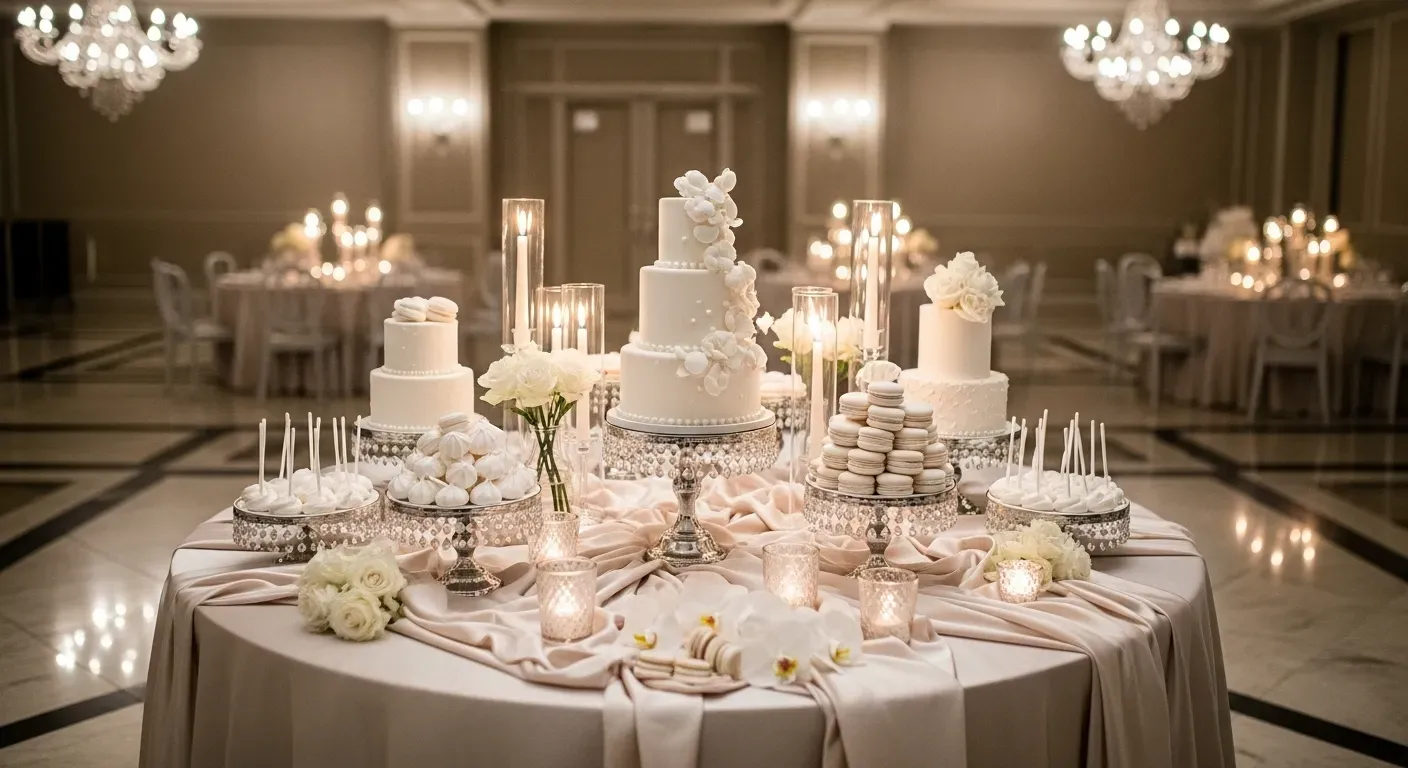 Elegant All-White Wedding Dessert Table
